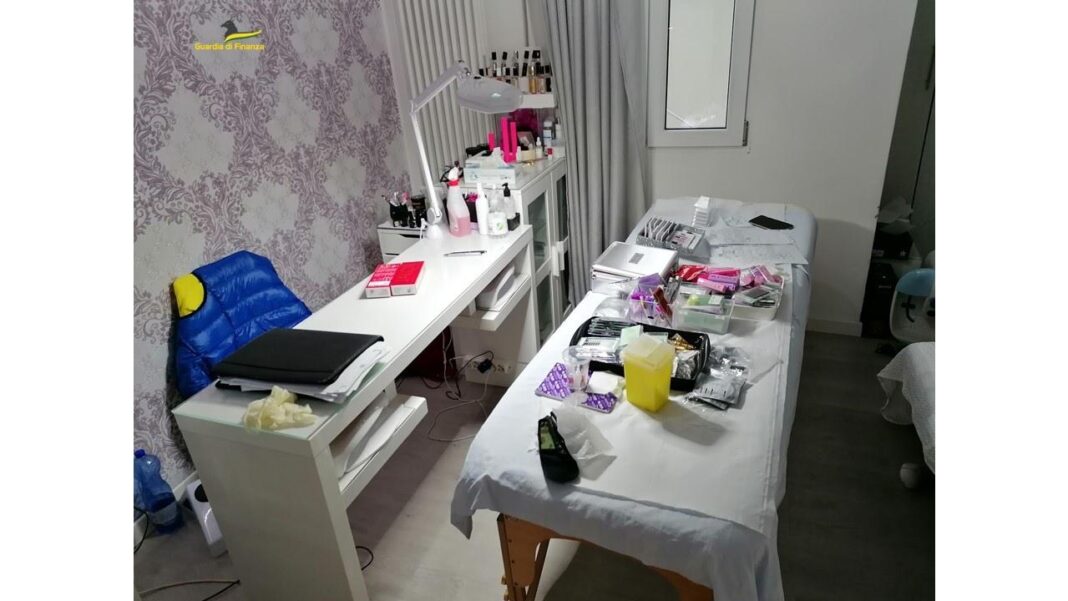 Durante il controllo, sono state rinvenute fiale e siringhe precaricate contenenti acido ialuronico di sodio e lidocaina cloridrato, insieme ad altra attrezzatura per trattamenti estetici e un’agenda con i dettagli delle numerose clienti, prova dell’attività economica non dichiarata.