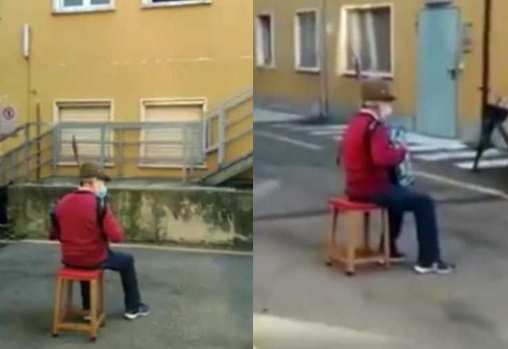 È già virale nel Piacentino il video che immortala Stefano Bozzini, alpino castellano classe ’39 che, nel pomeriggio di domenica ha imbracciato la sua fisarmonica e ha suonato per un’oretta seduto nel cortile dell’ospedale di Castel San Giovanni. Un’esibizione diretta alla moglie Carla, ricoverata nel nosocomio, che l’anziano non può visitare per motivi di sicurezza legati alla pandemia.