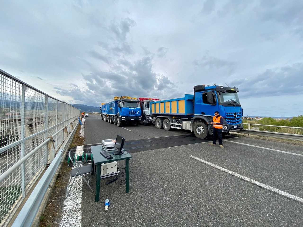 Come già nei precedenti controlli, sono state eseguite prove di identificazione dinamica che una volta elaborate hanno consentito di verificare il comportamento dinamico degli impalcati, restituendo risultati che escludono pericoli di crolli ed evidenziano un comportamento elastico delle strutture. Sono stati disposti sul viadotto 4 automezzi del peso di 400 quintali ciascuno e due da 330 quintali, per un carico complessivo di 2.260 quintali. Le prove di carico, eseguite alla presenza dei tecnici e del consulente scientifico dell’Università di Messina prof. Antonino Recupero, hanno mostrato chiaramente l’assenza di frecce residue allo scarico. Le verifiche sul viadotto Mazzarrà proseguono anche oggi nella carreggiata opposta, in direzione Messina.