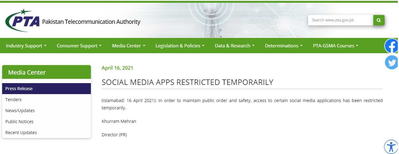 AgenPress – Il Pakistan ha bloccato oggi per alcune ore tutti i social media in coincidenza con la preghiera islamica del venerdì dopo giorni di manifestazioni di fondamentalisti musulmani che chiedono l’espulsione dell’ambasciatore francese in relazione alla vicenda delle vignette di Maometto ripubblicate lo scorso autunno da Charlie Hebdo. Twitter, Facebook, WhatsApp, Youtube e Telegram rimarranno bloccati fino alle 15 ora locale (le 12 ora italiana).