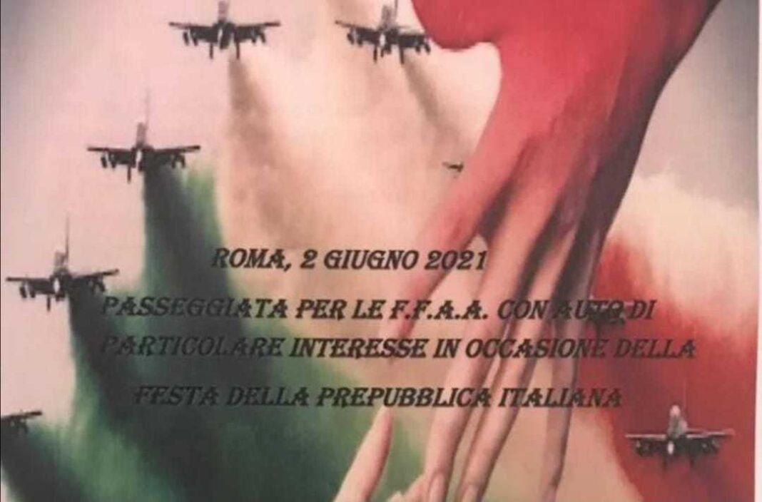 AgenPress –  Per “ringraziare le forze armate e onorare la nostra festa nazionale” il fuciliere di Marina Massimiliano Latorre ha organizzato a Roma una “passeggiata con 52 auto auto d’epoca sulle quali sventola il tricolore”.