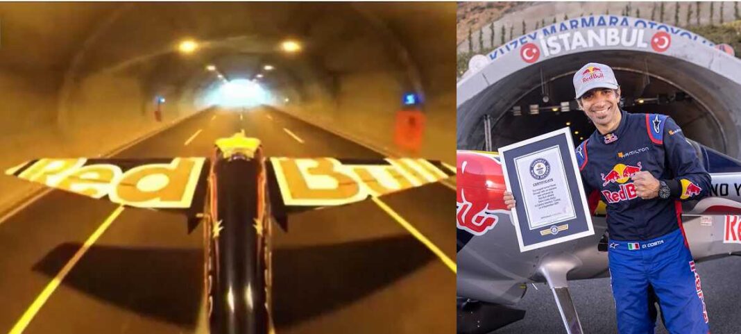 AgenPress – Sabato, Dario Costa, 41 anni, pilota acrobatico italiano ha manovrato con successo un aereo da corsa Zivko Edge 540 modificato su misura attraverso il tunnel gemelli di Çatalca lungo la Northern Marmara Highway in Turchia.