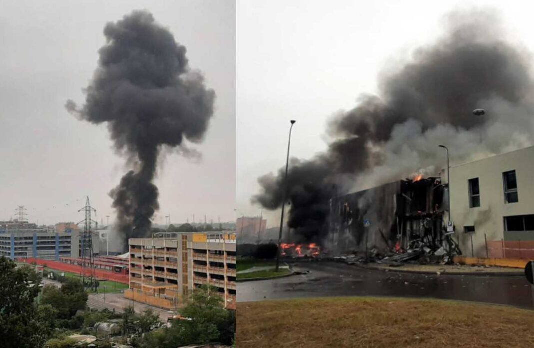 AgenPress – Un piccolo aereo privato, è precipitato su una palazzina vuota in ristrutturazione, adibita a uffici e parcheggio per autobus. Gli abitanti della zona hanno sentito un sibilo fortissimo e poi un’esplosione, causata dall’impatto dell’ultraleggero. Immediatamente le fiamme hanno avvolto la palazzina di due piani in via 8 ottobre 2001, angolo via Marignano, a pochi passi dalla sede dell’Eni di San Donato e dal capolinea della metropolitana gialla di Milano.