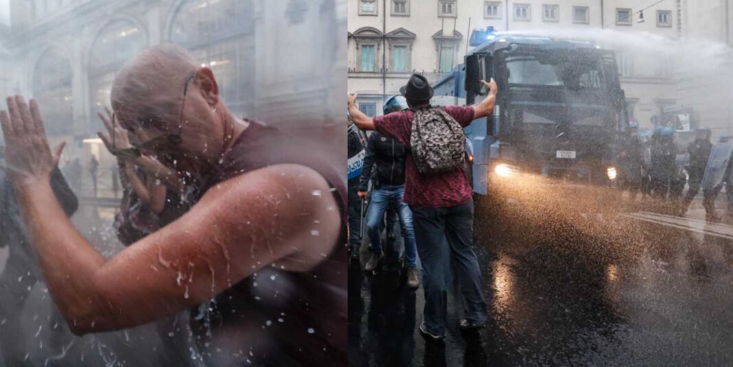 Sul posto anche i carabinieri e la Guardia di Finanza. A Largo Chigi, poco distante da Palazzo Chigi, il cordone delle forze dell’ordine che è impegnato a contenere i manifestanti del sit in No green pass ha esploso diversi lacrimogeni per disperdere la folla ed evitare ulteriori scontri. La polizia ha poi azionato gli idranti dai blindati. La situazione è ancora molto tesa. I manifestanti in risposta lanciato petardi e bombe carta.