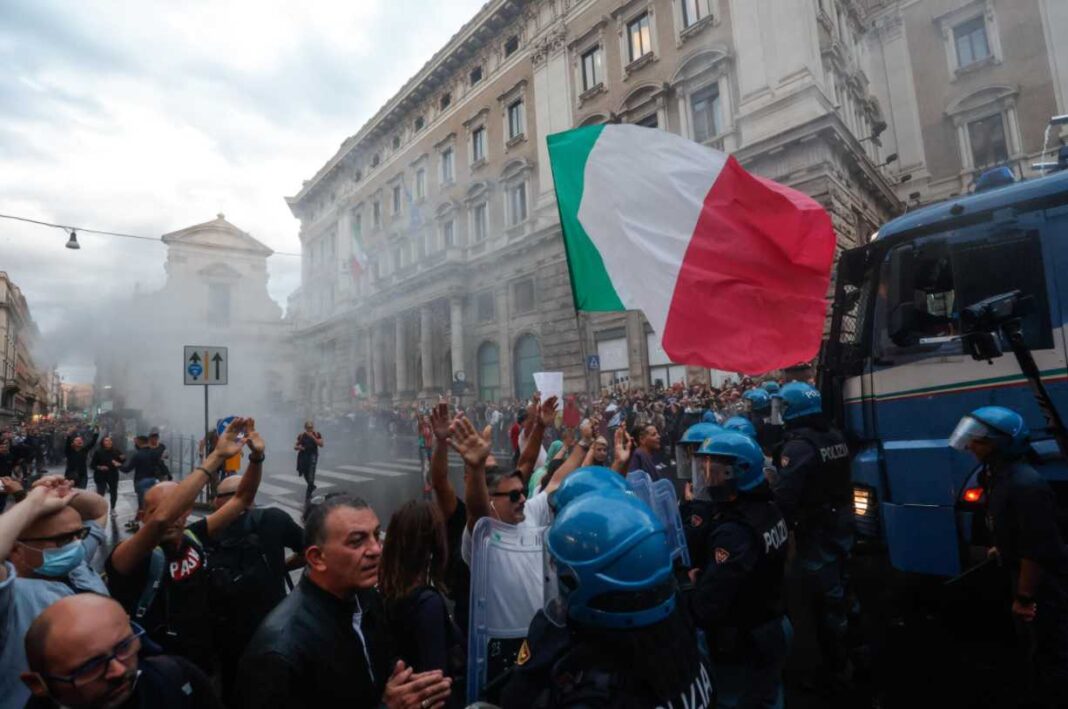 #No green pass. Roma, tensioni e scontri con la polizia durante la manifestazione