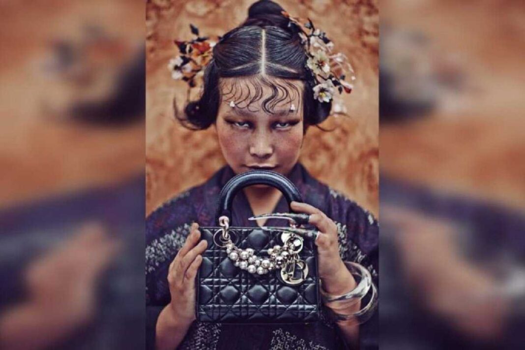 La fotografia, inclusa nella sfilata Lady Dior, ritrae una donna asiatica vestita con un costume tradizionale e con in mano una borsa Dior.