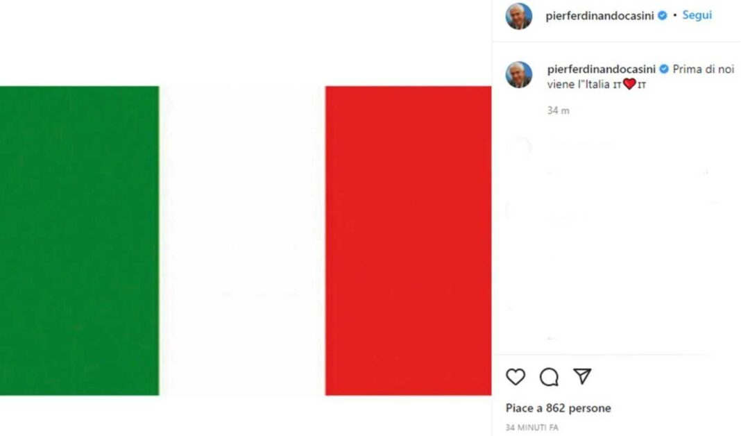 AgenPress – La bandiera del Tricolore e il messaggio ‘Prima di noi viene l’Italia’. La foto e il breve post sono apparsi sul profilo Instagram del senatore Pier Ferdinando Casini. Indicato tra i papabili per il Quirinale, ha ritirato la scheda e votato, diversamente da quanto per ora stanno facendo il grosso dei parlamentari della maggioranza di governo. La scelta dell’ex presidente della Camera, ha spiegato a chi glielo ha chiesto a Montecitorio, è dipesa dal “senso di rispetto istituzionale”.