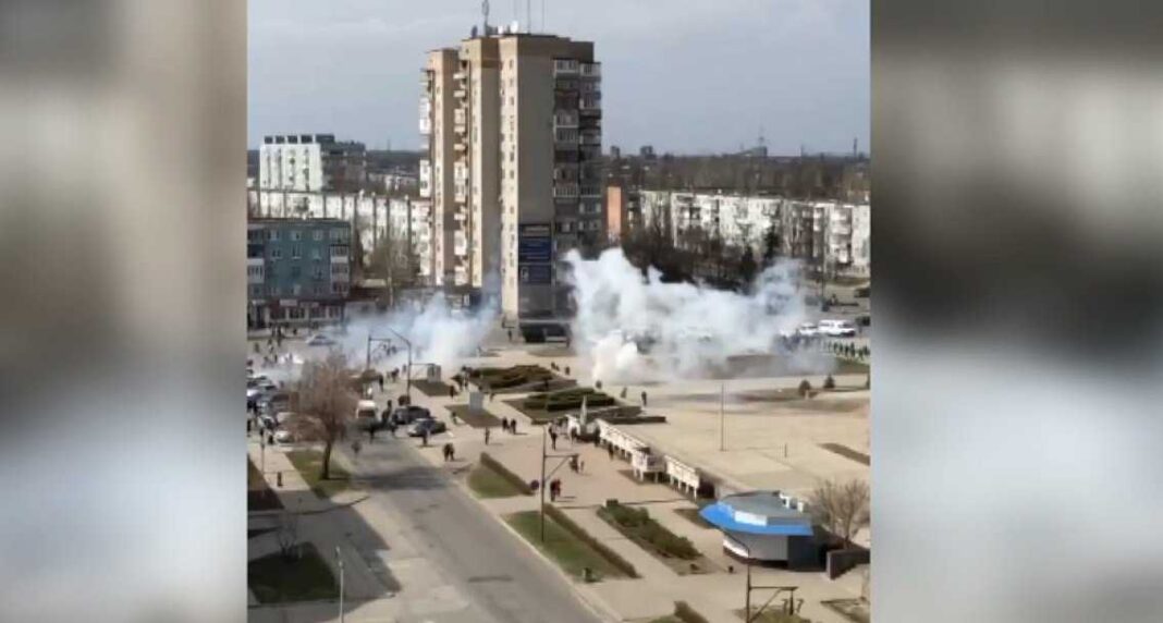 Ucraina. Bombe russe su un manifestazione di protesta nella città nucleare di Enerhodar