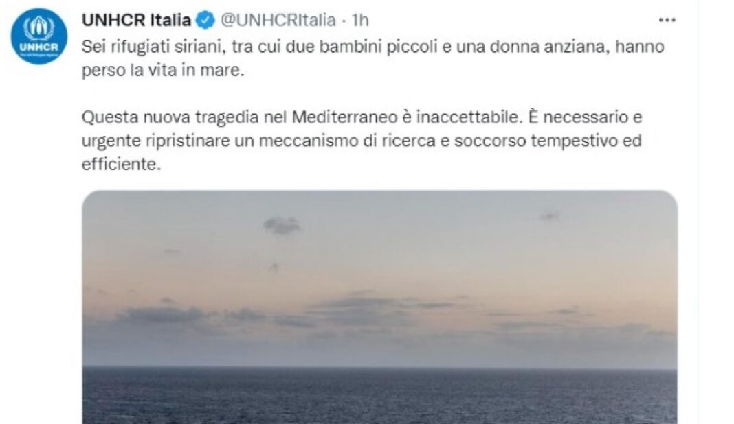 AgenPress – L’UNHCR si rammarica profondamente per la tragica morte di sei siriani, tra cui due bambini piccoli e una donna anziana, avvenuta durante un viaggio disperato in mare per cercare sicurezza in Europa. Sono morti su un barcone presumibilmente “di fame e di sete”.