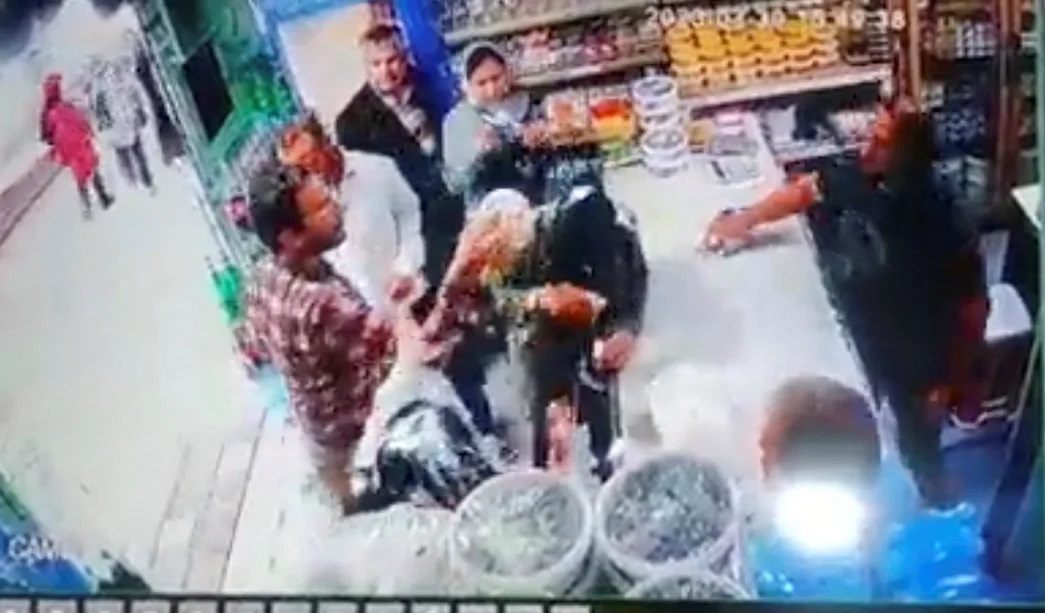 Il video mostra un uomo che si avvicina a una delle donne senza velo e le parla prima di prendere una vaschetta di yogurt dal negozio e lanciarla, colpendo entrambe le donne alla testa.