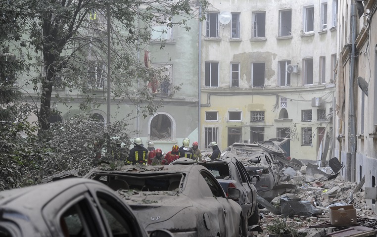 Il sindaco Andriy Sadovyi ha detto che circa 60 case sono state gravemente danneggiate e un certo numero di tetti di edifici sono stati spazzati via. Anche una scuola ei dormitori del politecnico sono stati danneggiati.
