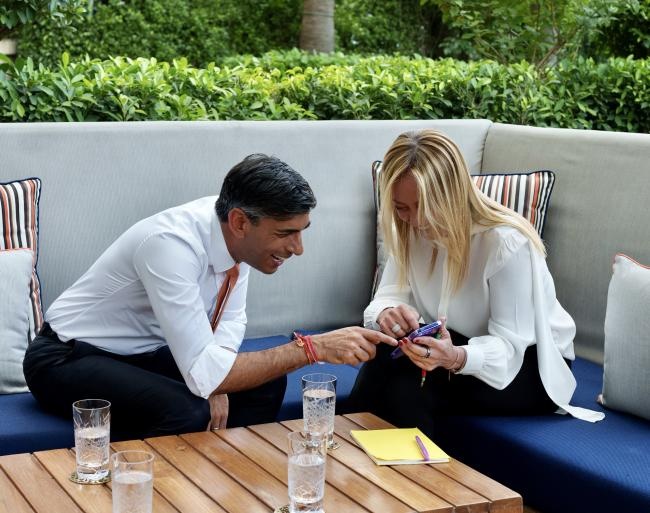 AgenPress. Il Presidente del Consiglio, Giorgia Meloni, ha avuto oggi un lungo e cordiale incontro con il Primo Ministro del Regno Unito, Rishi Sunak, incentrato sulla preparazione del Vertice G20 di domani e dopodomani, sulla priorità del continuo sostegno all’Ucraina con l’impegno a fornire garanzie di sicurezza e sull’urgenza di assicurare una risposta efficace e globale alle principali sfide delle nostre società, compresa quella dell’intelligenza artificiale.