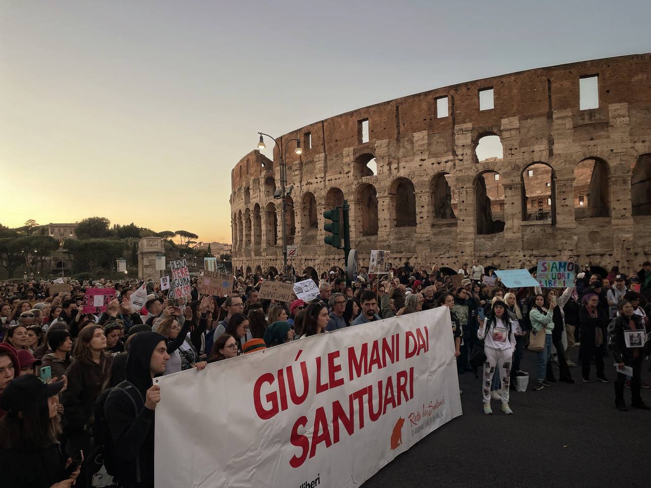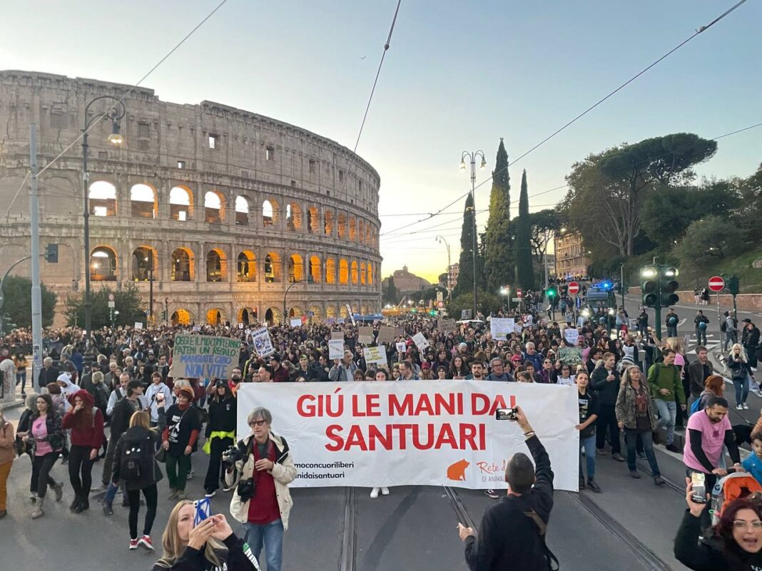 AgenPress. Oggi in 7000 a Roma hanno manifestato il loro dissenso per l’uccisione dei 9 maiali del Rifugio Cuori Liberi, avvenuta lo scorso 20 settembre a Sairano, in provincia di Pavia. Sono arrivati da tutte le regioni d’Italia per chiedere al ministro della Salute garanzie di tutela per tutti gli animali dei rifugi in caso di emergenza sanitaria. Il corteo di protesta da piazza di Porta san Paolo ha attraversato la città, sfilato davanti al Colosseo per concludersi a piazza di Porta san Giovanni.
