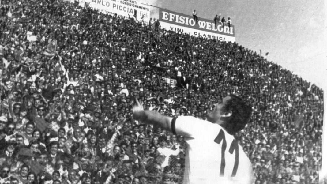 Un campione. Certamente. Un calciatore unico. Sicuramente. Un goleador. Senza dubbio. Quello scudetto cucito sul rosso e blu significava tanto. Quell’azzurro della Nazionale testimoniata sul petto e sulle spalle una idea di rigoglioso orgoglio per una squadra che considerava il calcio una testimonianza identitaria.