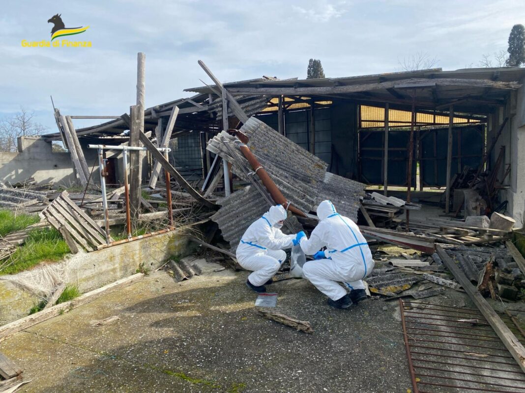 L’intervento dei militari, congiunto con il personale tecnico dell’Ufficio I.P.N. USL Toscana Nord-Ovest di Volterra, ha consentito di appurare che le coperture di amianto del capannone erano in parte crollate e sbriciolate sul terreno.