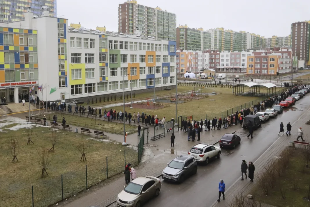 In un’azione chiamata “mezzogiorno contro Putin”, i russi che si oppongono al veterano leader del Cremlino si sono recati al seggio elettorale locale a mezzogiorno per rovinare la loro scheda elettorale o per votare per uno dei tre candidati contro Putin, che si prevede vincerà.