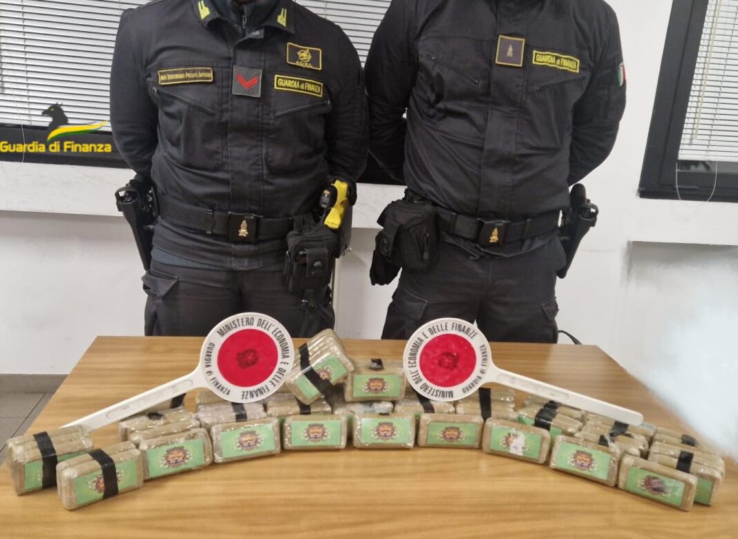 Ne è nato un lungo inseguimento, nel corso del quale l’auto in fuga ha tentato a più riprese di speronare la vettura della Guardia di finanza. Giunti lungo la via arginale che dal centro cittadino porta in direzione della MEBO, il passeggero ha scagliato dal finestrino un voluminoso pacco che, impattando sull’asfalto, si è aperto, disseminando sulla carreggiata numerosi panetti di droga.