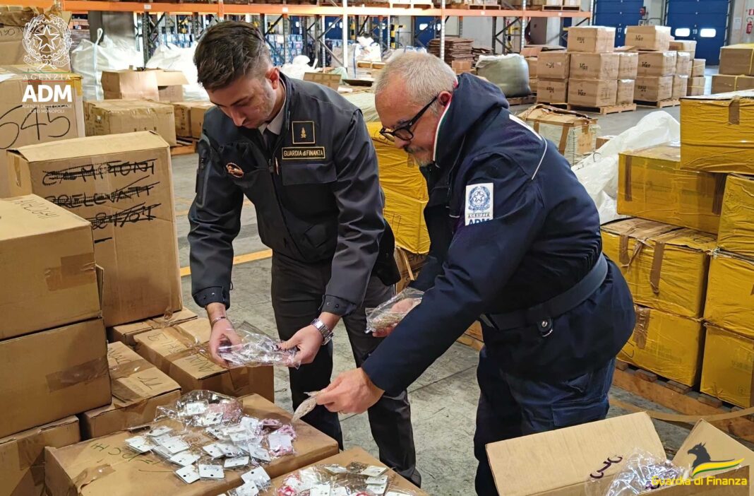 In tale contesto operativo gli investigatori, tramite l’analisi della documentazione doganale e l’incrocio delle informazioni acquisite con quelle rilevabili dalle banche dati in uso, hanno selezionato una spedizione proveniente dalla Cina connotata da importanti indicatori di rischio. Il successivo controllo sulla merce prevalentemente bracciali, anelli, collane e orecchini, ha fatto emergere forti sospetti riguardo alla composizione chimica dei prodotti, che sono stati pertanto inviati ai laboratori chimici dell’Agenzia delle Dogane per valutarne la composizione.