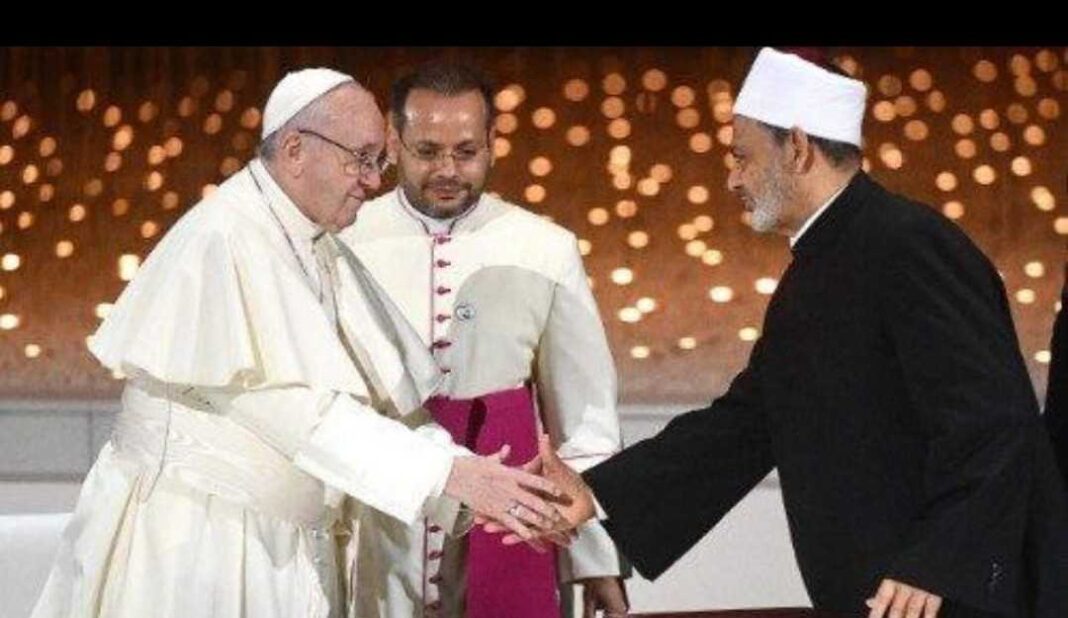Il Documento sulla ‘Fratellanza Umana per la Pace Mondiale e la Convivenza Comune’, sottoscritto da Sua Santità Papa Francesco e dal Grande Imam di Al-Azhar Ahmad Al-Tayyeb , il 4 febbraio 2019, nella città di Abu Dhabi, ha sancito un’alleanza tra tre religioni il cui Dio è unico, che sono la religione islamica sunnita, la religione ebraica e la religione cattolica.
