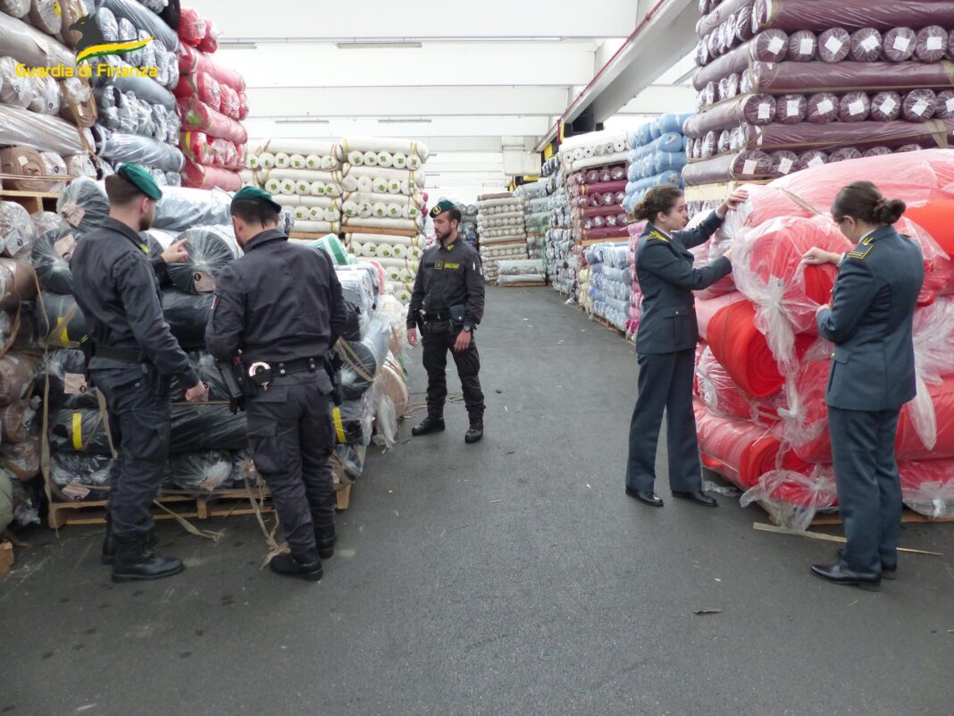 L’operazione portata a termine nei confronti di un’impresa ubicata nel Macrolotto di Prato ha permesso di sequestrare 70.680 rotoli di tessuto (per una lunghezza complessiva di circa mt. 6.000.000), 5.012 t-shirt e 340.000 accessori per abbigliamento, dal valore totale di 6.000.000 di euro, privi dell’indicazione dei dati del produttore/importatore e quelli relativi alla composizione dei tessuti.