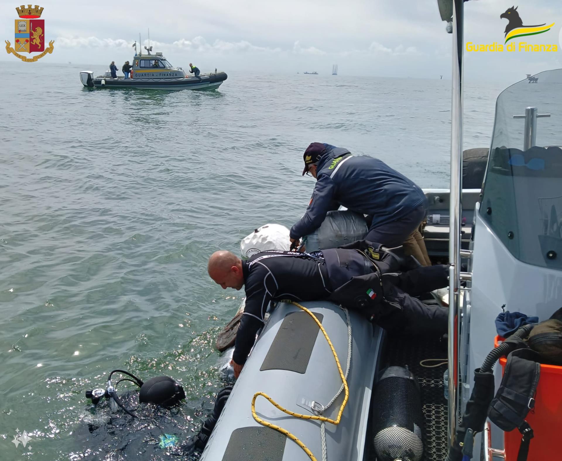 In particolare, l’ispezione è stata approfondita con l’importante contributo dei sommozzatori del Reparto Operativo Aeronavale di Rimini della Guardia di Finanza, che hanno scandagliato la parte immersa dello scafo, rinvenendo, dopo diverse ore di attività e nonostante le difficoltà legate alle pessime condizioni meteo-marine, diversi involucri, all’interno delle condotte delle prese a mare, situate a circa 9 metri di profondità dalla linea di galleggiamento, certamente estranei alle dotazioni della nave.