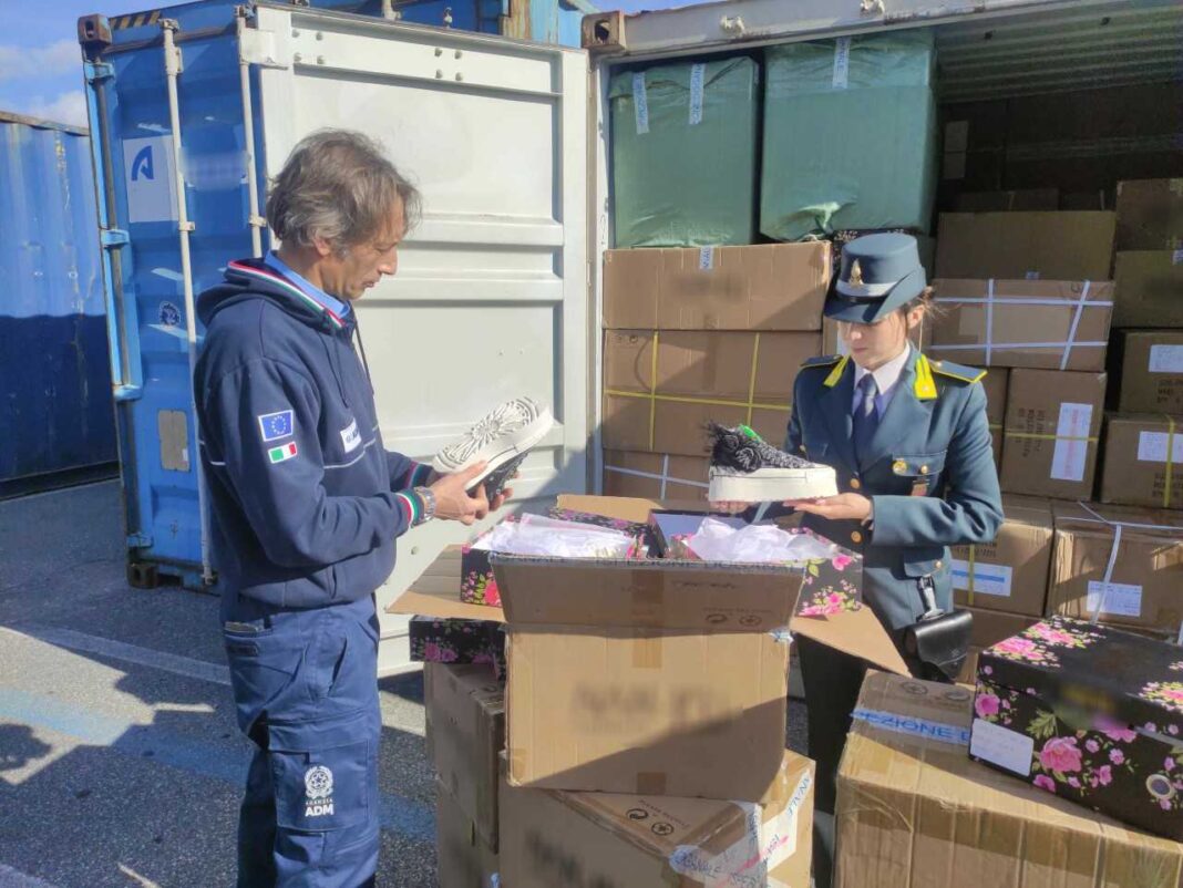 ADM e Guardia di Finanza sequestrano oltre 7.900 paia di calzature contraffatte