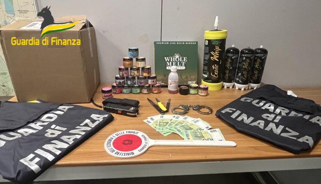 Le Fiamme Gialle hanno rinvenuto in casa dell’indagato anche 4 bombole di protossido di azoto. Nello specifico quest’ultima sostanza, disponibile sotto forma di vapore, può essere usata anche come sostanza stupefacente che si può inalare.