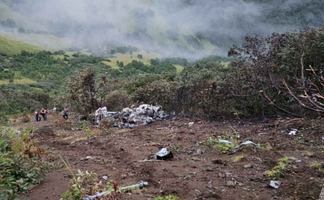 Le riprese aeree pubblicate dal Ministero delle situazioni di emergenza russo hanno mostrato detriti di elicotteri giacenti su un pendio vicino alla cima di una grande collina boscosa. Il ministero ha affermato che l’aereo è stato trovato vicino al luogo in cui è scomparso dal tracciamento radar.