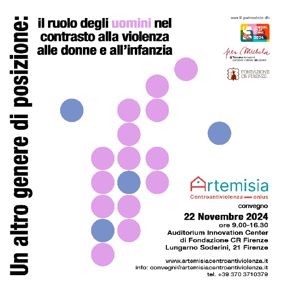 AgenPress. Il 22 novembre 2024 si terrà a Firenze, presso l’Auditorium Innovation Center della Fondazione CR Firenze, il convegno dal titolo “Un altro genere di posizione: il ruolo degli uomini nel contrasto alla violenza su donne e bambini”, organizzato dall’Associazione Artemisia, Centro Antiviolenza di Firenze, all’interno del cartellone di Eredità delle Donne 2024. L’incontro si propone come un momento di riflessione pubblica e di dialogo tra uomini e donne impegnati nel contrasto della violenza alle donne e all’infanzia, esplorando nuove alleanze e modelli di coinvolgimento.