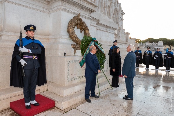 La giornata si è aperta con un momento di straordinario significato: la deposizione di una corona d’alloro al Sacello del Milite Ignoto presso l’Altare della Patria, un gesto che ha reso omaggio alla memoria dei caduti e ha simbolicamente rafforzato il legame tra i valori repubblicani e l’impegno della Fondazione.