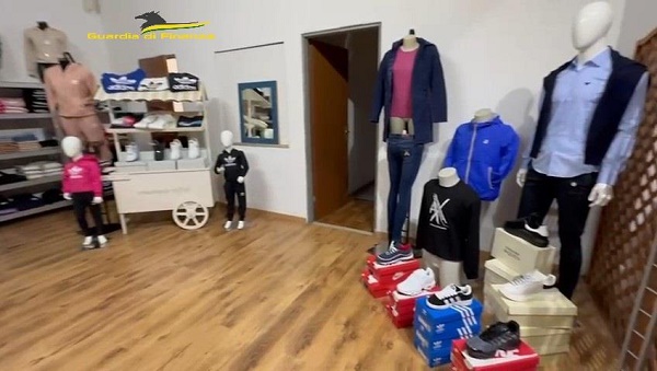 un garage risultato in uso ai due, ove è stata scoperta una vera e propria “boutique” di merce contraffatta: i locali erano stati adibiti a negozio, con camerini per la prova dei capi,
