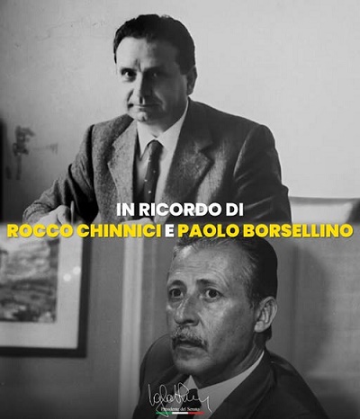 AgenPress. Rocco Chinnici e Paolo Borsellino sono simboli di coraggio e dedizione alla giustizia. A 100 anni dalla nascita di Chinnici e a 85 da quella di Borsellino, ricordiamo il loro sacrificio per la legalità, la libertà e la democrazia. La loro eredità continua a guidare chi lotta contro la criminalità organizzata.