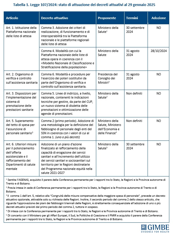 AgenPress. La Fondazione GIMBE esprime preoccupazione per i significativi ritardi nell’adozione dei decreti attuativi previsti dal DL 73/2024 sulle liste d’attesa convertito dalla L. 107/2024. Nonostante le dichiarazioni istituzionali sottolineino progressi nell’attuazione delle misure volte ad abbattere i tempi di attesa, l’analisi indipendente della Fondazione evidenzia una situazione ben diversa. Il tema delle liste d’attesa è centrale per la salute delle persone ed è stato richiamato anche dal Presidente Mattarella nel discorso di fine anno per le sue implicazioni sanitarie, sociali ed economiche: “Vi sono lunghe liste d’attesa per esami che, se tempestivi, possono salvare la vita. Numerose persone rinunciano alle cure e alle medicine perché prive dei mezzi necessari”.