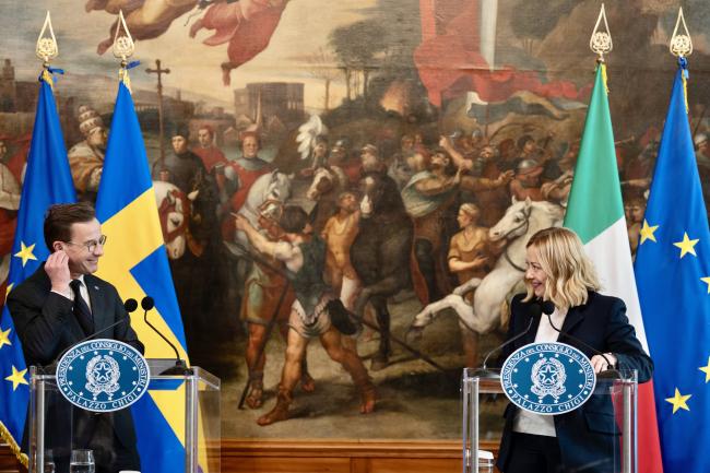Io ho sempre detto e ritengo che queste garanzie di sicurezza debbano essere realizzate nel contesto dell’Alleanza Atlantica perché penso che questa sia la cornice migliore per garantire una pace che non sia né fragile né temporanea e che appunto scongiuri il rischio che l’Europa possa ripiombare presto nel dramma della guerra. Altre soluzioni, come ho già detto, mi sembrano più complesse e francamente meno efficaci. Sicurezza vuol dire anche sicurezza dei confini, contrasto all’immigrazione irregolare, altra materia che ci ha visto lavorare molto bene insieme con il Primo Ministro svedese. C’è, da questo punto di vista, una grande convergenza di vedute.