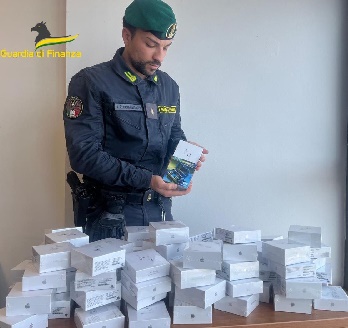Il successivo controllo, effettuato dai Baschi Verdi presso le attività commerciali, ha evidenziato come tutta la merce ivi custodita sugli scaffali da un primo controllo visivo non appariva per confezionamento riconducibile alla Apple. Tuttavia, da un controllo più approfondito, a seguito dell’apertura delle confezioni in scatole con marchi sconosciuti, è stato possibile scoprire come all’interno vi fosse l’ulteriore scatola Apple, identica all’originale, con Airpods e Apple Watch di pregevole fattura ma comunque contraffatti. Il successivo e completo controllo effettuato nei magazzini dei negozi ha consentito di rinvenire migliaia di ulteriori prodotti a marchio Apple, inscatolati e pronti per essere spediti agli acquirenti online.