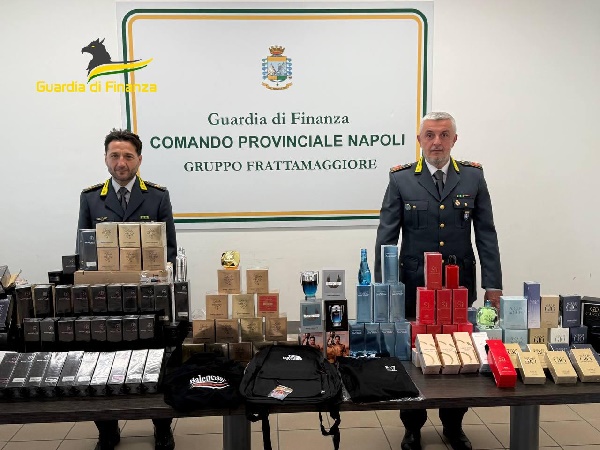 La successiva perquisizione ha consentito di rinvenire oltre 40 mila articoli contraffatti, tra profumi, cosmetici, accessori, capi di abbigliamento e materiale hi-tech, nella disponibilità dei responsabili.