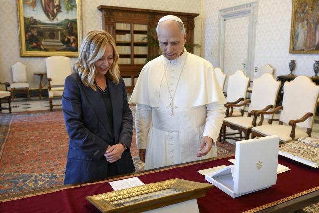 AgenPress. Il Presidente del Consiglio, Giorgia Meloni, si è recata oggi in visita ufficiale da Sua Santità Leone XIV. Il Presidente Meloni è stata ricevuta in udienza dal Santo Padre nella Biblioteca privata del Palazzo Apostolico.