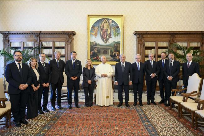 Al termine del colloquio, il Presidente Meloni ha consegnato in dono al Papa una veduta seicentesca della Chiesa dei Santi Domenico e Sisto e dell’antico monastero domenicano che ospita l’Angelicum, la Pontificia Università “San Tommaso d’Aquino” dove Leone XIV ha compiuto un tratto significativo della sua formazione.