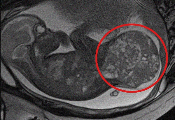 La grande massa rimossa, un teratoma sacro-coccigeo, è una rara neoplasia che si sviluppa nella parte terminale della colonna vertebrale e colpisce circa 1 neonato ogni 35.000-40.000 nati vivi. Pur essendo solitamente benigna, può comportare gravi complicanze per il feto. Tra queste il rischio di scompenso cardiaco, idrope fetale e morte intrauterina.