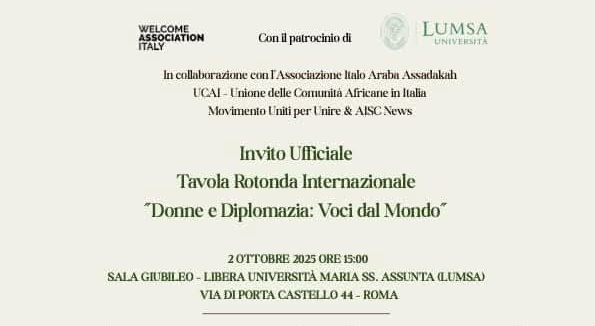AgenPress. Cresce l’attesa per la Tavola Rotonda internazionale “Donne e Diplomazia: Voci dal Mondo”, in programma il prossimo 2 ottobre presso la Libera Università Maria SS. Assunta (LUMSA) di Roma. L’evento vedrà la partecipazione straordinaria di 20 ambasciatrici provenienti da Europa, Africa, Asia, America Latina e Medio Oriente, che porteranno le loro testimonianze confrontandosi con delegazioni universitarie italiane e straniere. Un’occasione unica di dialogo diretto tra le nuove generazioni e le massime rappresentanze diplomatiche, in un momento storico segnato da conflitti, disuguaglianze e crisi internazionali.