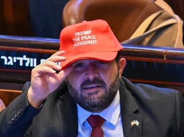 Cappelli “Trump The Peace President” indossati all’interno della Knesset