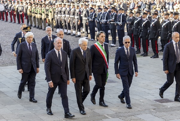 AgenPress. Il Presidente della Repubblica, Sergio Mattarella, ha preso parte a Padova, nella Basilica di Santa Giustina, ai funerali di Stato del Brigadiere capo Valerio Daprà, del Carabiniere scelto Davide Bernardello e del Luogotenente Marco Piffari, deceduti nell’esplosione del casolare a Castel d’Azzano in provincia di Verona.