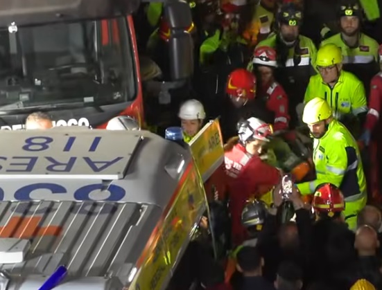Il portavoce dei vigili del fuoco dichiara: “Siamo riusciti in un’impresa eccezionale: è stato estratto il ferito, è stato portato a terra ed è già in ambulanza. Possiamo dare la notizia eccezionale che è in vita. Non sappiamo quali sono le sue condizioni di salute, però è vivo: siamo riusciti in un’impresa, ripeto, eccezionale”.