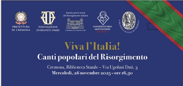 AgenPress. La Sezione di Cremona-Lodi dell’Istituto per la Storia del Risorgimento Italiano e la Fondazione Insigniti OMRI, con la collaborazione del Conservatorio “Claudio Monteverdi” e della Biblioteca Statale di Cremona, organizzano un concerto di musiche di Michele Novaro che, se ha legato per sempre il suo nome al nostro inno nazionale, è stato durante la stagione risorgimentale un autore prolifico e un autentico patriota.