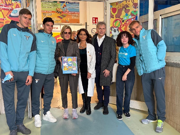 A Roma, Cristina Mezzaroma, Presidente della Fondazione S.S. Lazio 1900 ETS, David Santodonato, Presidente del Comitato UNICEF di Roma e i giocatori della S.S. Lazio hanno consegnato i regali sospesi ai bambini ospiti presso l’Azienda Ospedaliero Universitaria Policlinico Umberto I.
