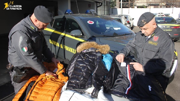 - penale di oltre 200 giubbotti contraffatti riproducenti i loghi di vari brand (Blauer, Colmar, Moncler e Canada Goose), detenuti da un esercente ambulante in prossimità di un centro commerciale di Verano Brianza (MB), con conseguente deferimento del soggetto alla Procura della Repubblica di Monza per i reati di introduzione nello Stato e commercio di prodotti con segni falsi e ricettazione;
