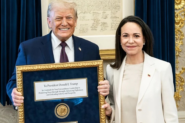 AgenPressMaría Corina Machado, vincitrice del premio 2025, ha donato la sua medaglia a Donald Trump durante un incontro privato alla Casa Bianca in segno di apprezzamento per aver deposto il leader repressivo del Venezuela, Nicolás Maduro.