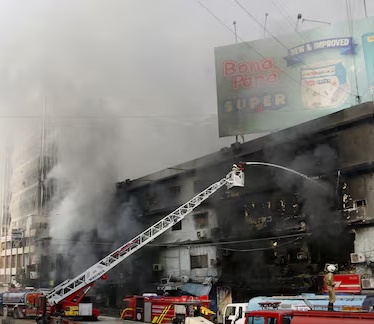 L’incendio è scoppiato nella tarda notte di sabato nel centro commerciale multipiano Gul Plaza, nel quartiere degli affari della città, e ha continuato a bruciare per più di 24 ore, ostacolando le operazioni di soccorso in un’area densamente popolata.