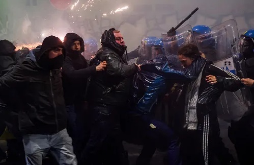 Poi ci sono loro: i nemici dell’Italia e degli italiani, che manifestano “contro le Olimpiadi”, facendo finire le immagini degli scontri verificatesi a Milano sulle televisioni di mezzo mondo. Dopo che altri hanno tranciato i cavi della ferrovia per impedire ai treni di partire.