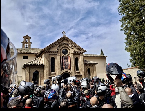 Le moto d’epoca hanno trovato spazio nel piazzale antistante la chiesa, mentre le altre sono state disposte lungo il viale. I circa 160 partecipanti hanno preso parte a un momento intenso e partecipato, culminato con la benedizione collettiva: centinaia di caschi alzati verso il cielo, in un gesto simbolico che ha rappresentato lo spirito dell’evento.